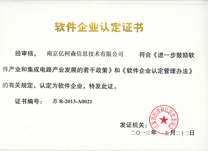EXSCIN公司顺利通过了江苏省经济和信息化委员会的软件企业资格审核,